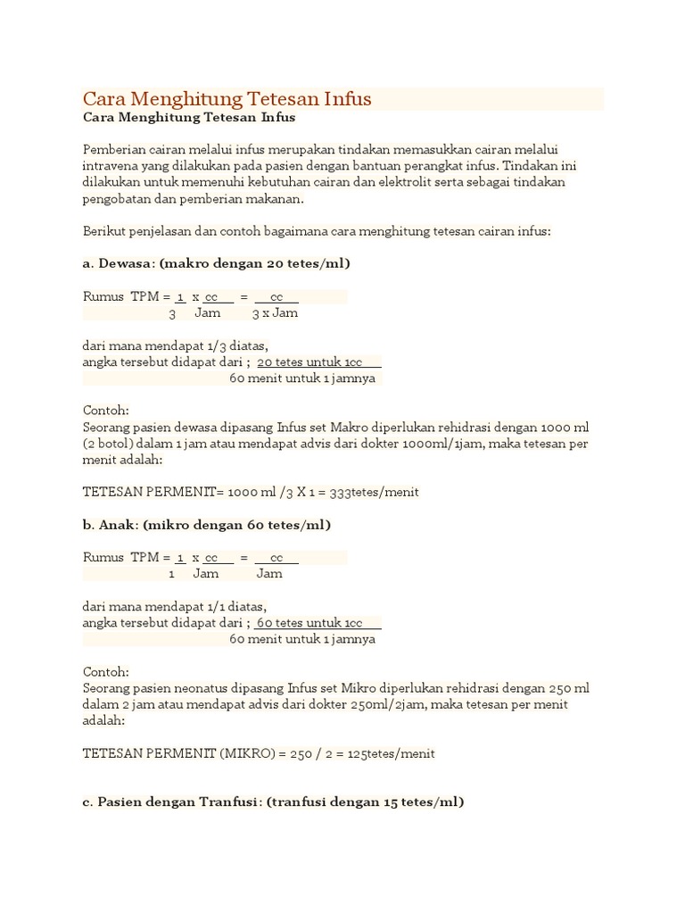 Doc Rumus Tetesan Cairan Infus Tatha Ryuka Academia Edu