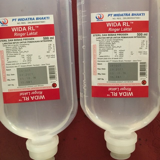 WIDA RL INFUS 500ML TUTUP PLASTIK. Infus Intravena digunakan untuk memberikan obat-obatan ke pembuluh darah secara konstan namun sedikit demi sedikit terdiri atas infus pompa dan infus tetes. Intravena IV alias infus adalah sebuah metode pemberian obat yang dilakukan secara langsung melalui pembuluh darah.