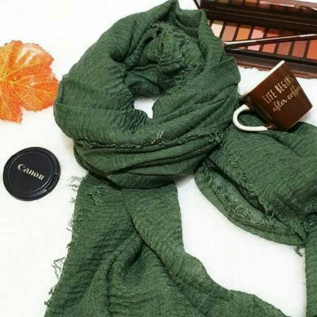 Pashmina Crincle Rawis Hijau Army Shopee Indonesia