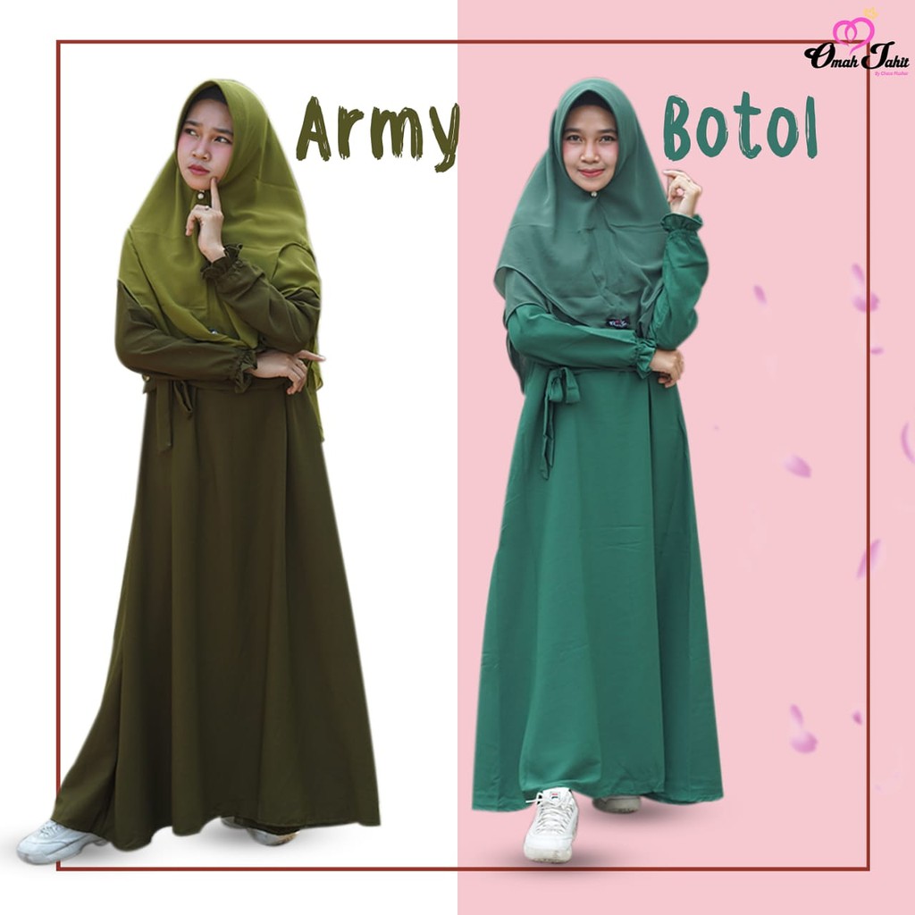 Gamis Wolfis Zaida Warna Hijau Olive Kombinasi Hijau Army Shopee Indonesia